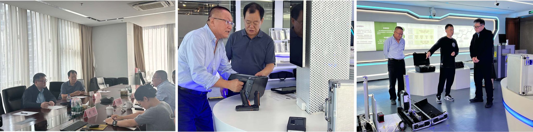 在深圳砺剑防卫技术有限公司,调研团队与企业开展座谈交流,就相关合作事宜进行了深入探讨。